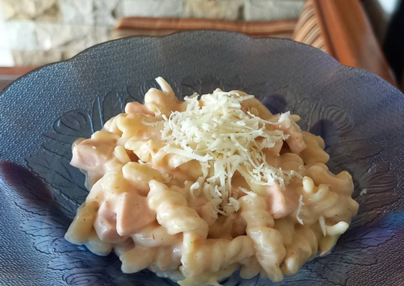 Aku recook resep ini dari channel youtube chef arnold, aku modif dikit dgn menambahkan bawang putih, bawang bombai dan sosis. Di resep ini tepung terigu diganti pake maizena