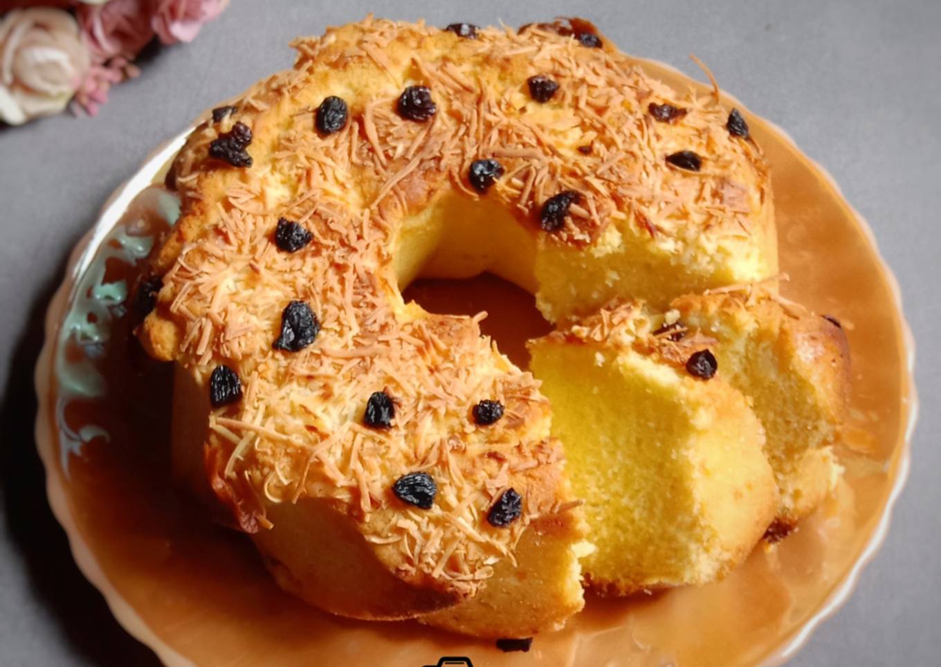 - Tuang adonan ke dalam loyang yang sudah dioles margarin dan ditaburi tepung. Lalu ratakan dan hentak. Kemudian taburi dengan keju parut dan kismis. Panggang selama kurang lebih 50 menit. Dengan suhu 170°C (sesuaikan oven masing²). Lakukan test tusuk untuk mengetahui cake sdh matang atau belum. Jika sudah tidak lengket di lidi, matikan api.