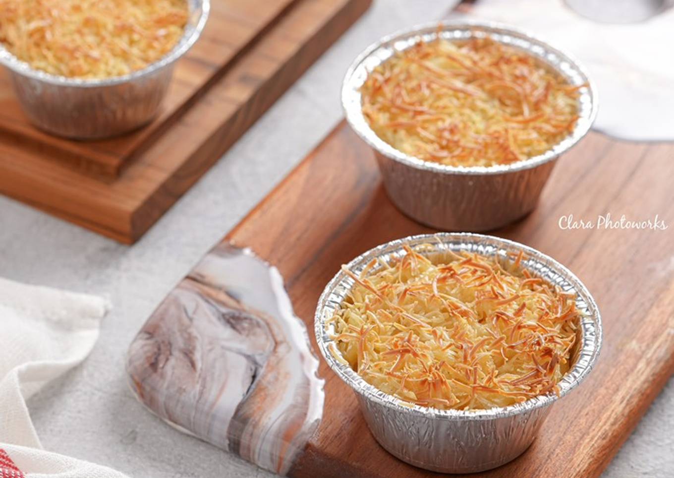 - Tuang makaroni dalam cup alumunium foil atau loyang. Taburi dgn keju parut. Panggang dalam oven sampai permukaan kuning kecoklatan. Angkat dan sajikan.