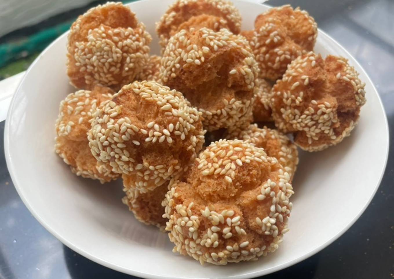 - Bulatkan adonan celupkan ke dalam air lalu gulingkan ke dalam wijen.