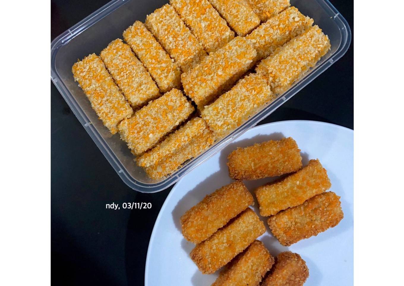 - Diamkan di kulkas selama 30 menit agar menempel tepung panirnya. Goreng atau simpan di freezer.