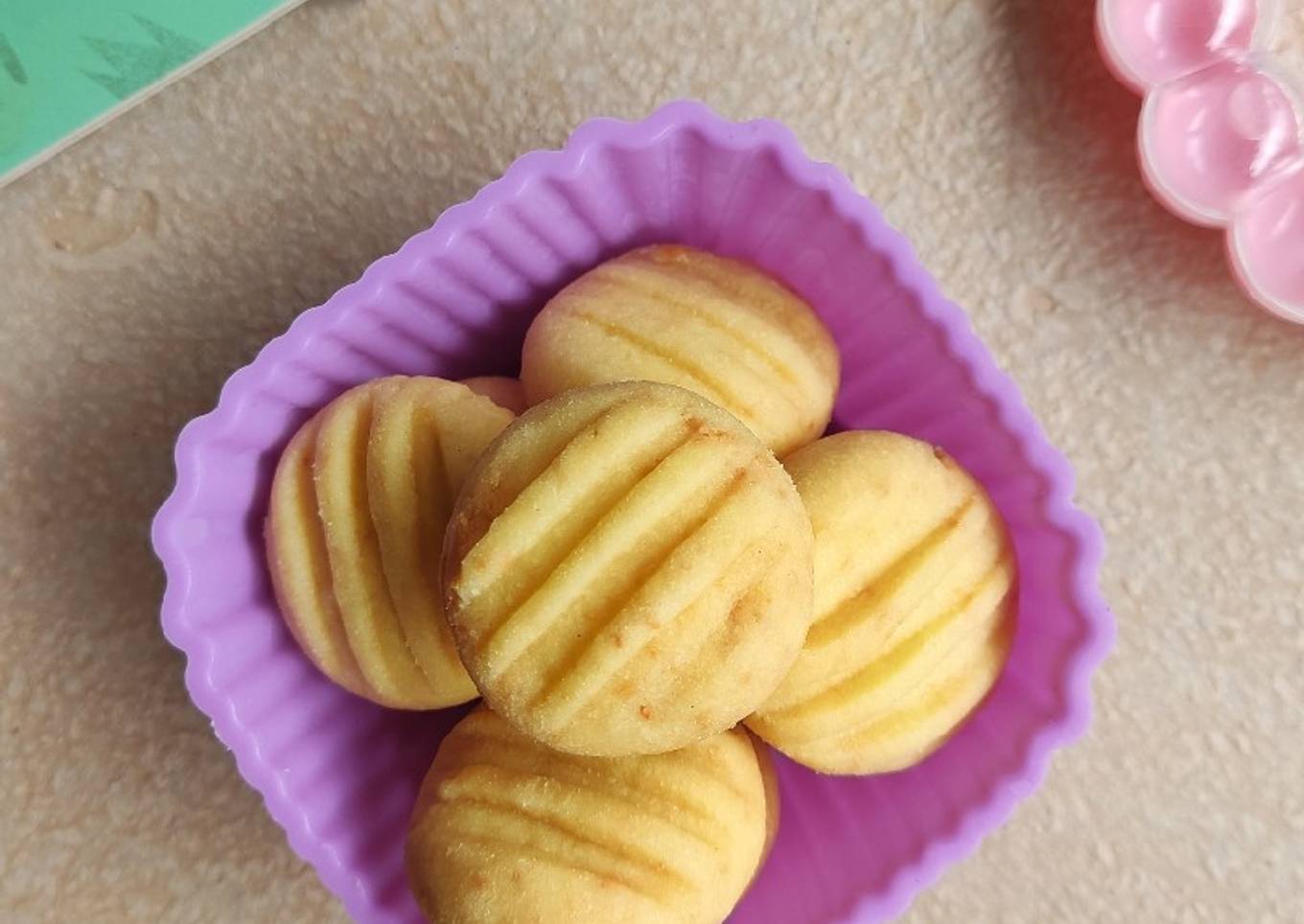 - Ambil adonan sesuai selera (saya ½ sdm), bulatkan, tekan dengan garpu