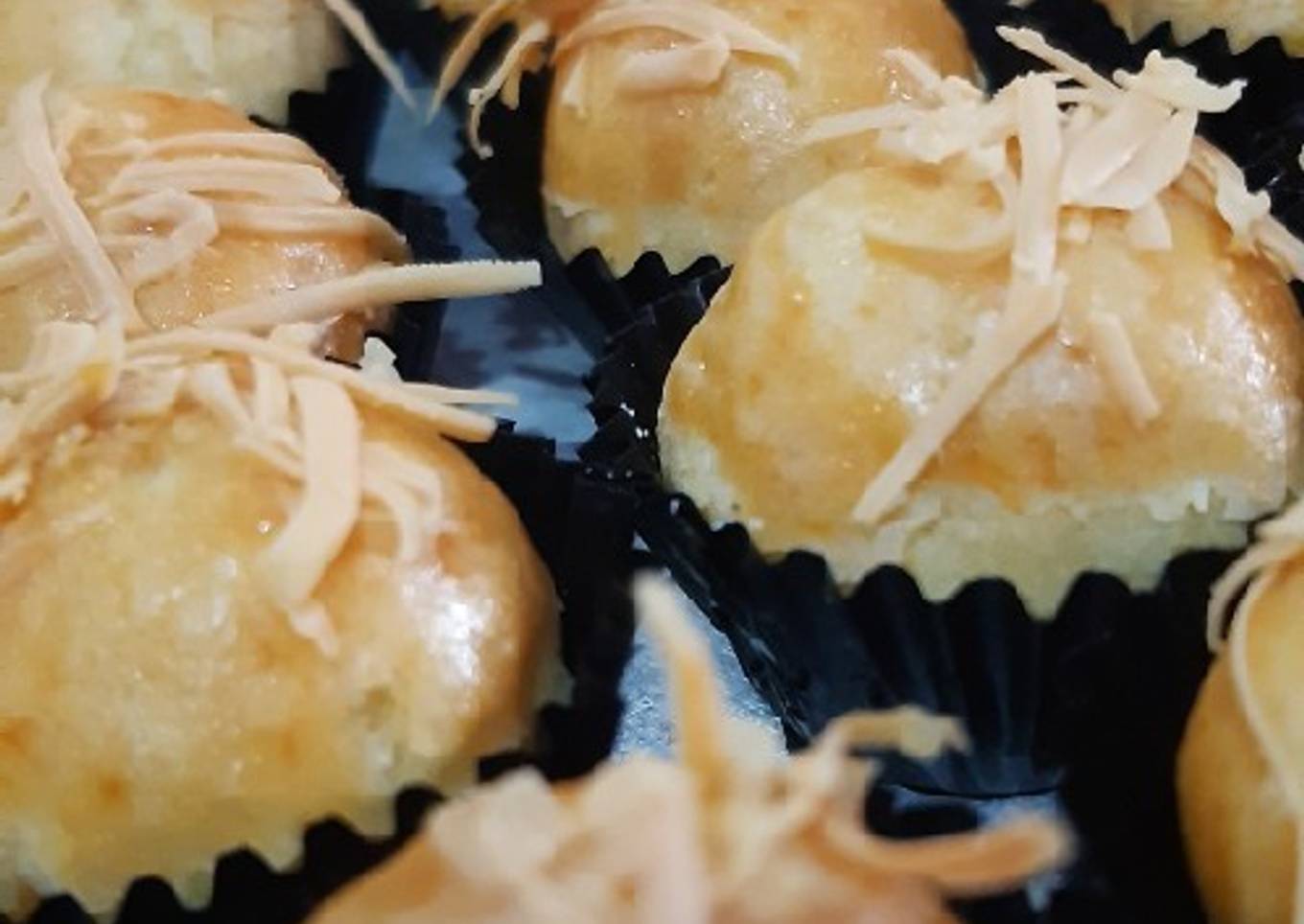 - Panggang di oven dg api kecil, setelah 15 menit keluarkan dan oles dg olesan kuning telur + taburan keju