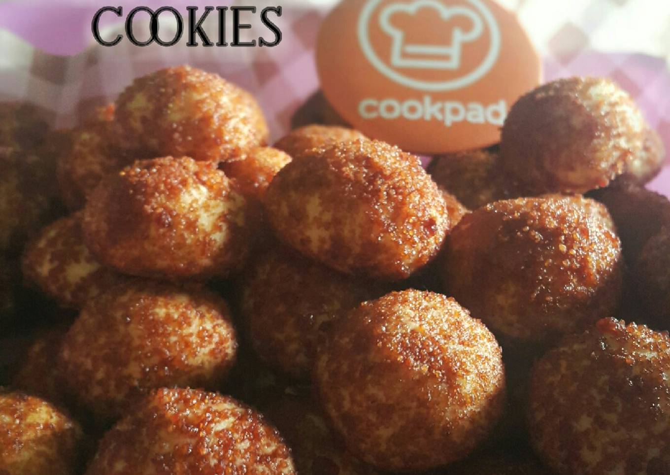 - Bentuk bulat kira-kira 8 gr. Gulingkan ke dalam gula palem. Tata di loyang.