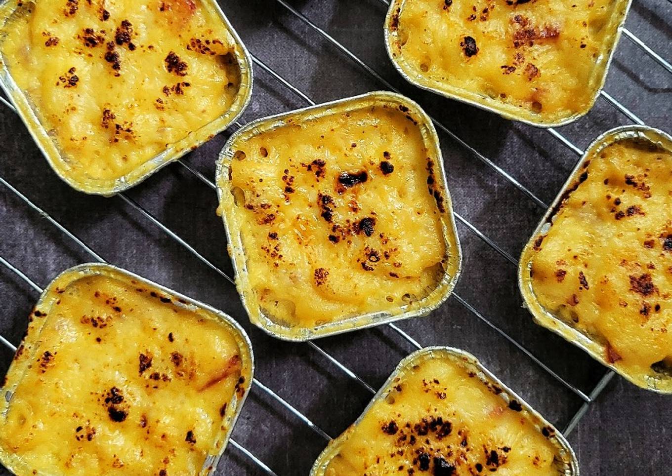 Kukus macaroni selama 20 menit, kemudian panggang di suhu 200⁰C dengan api atas bawah sampai atasnya kecokelatan. - Atau bisa langsung dipanggang sampai matang tanpa dikukus lebih dahulu.