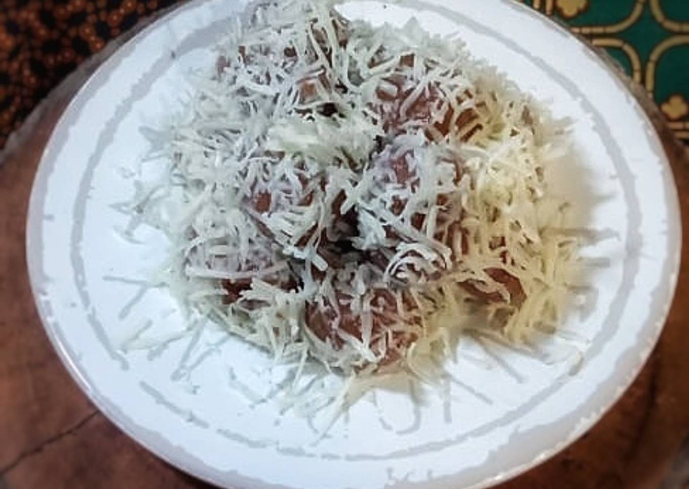 - Ambil secukupnya adonan kulit lalu beri isian,bentuk bulatan lalu beri tepung bekas tutup isian agar tidak bocor ketika direbus. Taruh klepon diatas tepung agar tidak lengket di wadah. Lakukan hingga habis